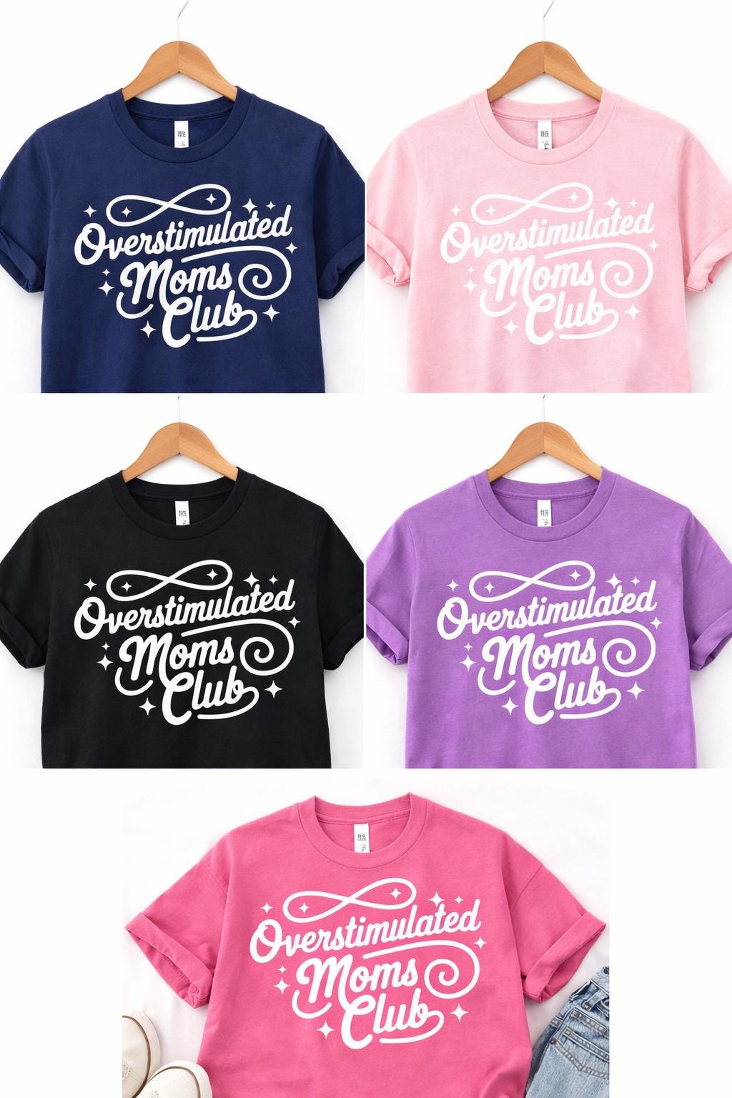 Welcome to the Overstimulated Mom’s Club — where the coffee is reheated, the snacks disappear instantly, and someone always needs you the second you sit down. This fun and relatable Bella Canvas crew neck t-shirt is perfect for moms who wear the chaos with humor and style. Made with the soft, lightweight feel Bella Canvas is known for, this tee is comfortable enough for everyday wear while still feeling cute and put together. Pair it with leggings, biker shorts, jeans, or a messy bun for the ultimate mom uniform. Whether you’re running errands, doing school pickup, surviving toddler life, or gifting your favorite mama, this shirt is equal parts funny, trendy, and wearable. This tee also makes a great gift for Mother’s Day, baby showers, birthdays, new moms, or your favorite overstimulated bestie. Why You’ll Love It Bella Canvas soft-style t-shirt Trendy, funny motherhood design Comfortable unisex retail fit Easy to style for everyday wear Perfect gift for moms Lightweight and breathable fabric Perfect For Busy moms Toddler moms New moms Mother’s Day gifts Baby shower gifts Funny mom apparel Trendy mom outfits Everyday casual wear